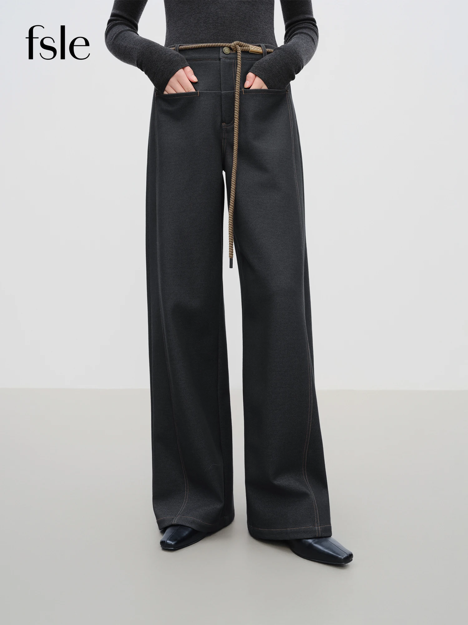 FSLE【Premium Series】Original Color Straight Wide-leg Brushed Jeans for Women Winter 2025 New Style Ins Simple Design All-match