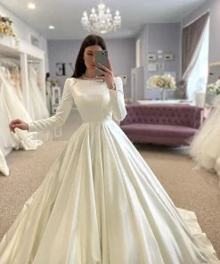 - Style: Simple Satin wedding dress,Muslim Bridal Gown,Modest Long Wedding Gown