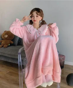 Thickened Warm Coral Velvet Nightgown Female Autumn and Winter One-Piece Pajamas Student Homewear Solid Sleepwear Loungewear